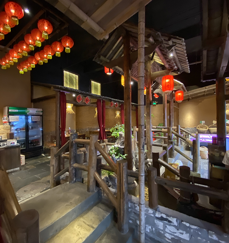 4、燈具款式及布置。燈具外觀款式的設計是餐飲空間設計的一部分,是空間陳設藝術的重要表現(xiàn)形式。不同的餐飲品類對燈具款式及材質都有特殊的要求。除了常規(guī)的玻璃、金屬、塑膠等工業(yè)材料外,還有一些自然的原生材料,如竹、藤、線、紙等。在品深餐飲全案策劃設計中,燈具的款式和材料都是統(tǒng)一在全案品牌策劃設計的系統(tǒng)中,比如我們設計的悅得閑廣式點心茶樓,專門原創(chuàng)設計的吊燈模仿鳥籠造型就是為了傳遞廣州老茶客提籠遛鳥的飲早茶的悠閑幸福生活,和整個品牌文化高度契合。