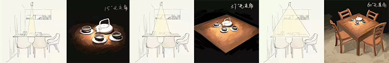 5、材質、光束角度、光源色彩等靈活應用。材質不同,其中透明度、反射率、折射率、發(fā)光度等都不同。不同方向的燈光照射在同一物體上,表現(xiàn)出來的光澤和肌理也是不一樣,靈活駕馭光線的特點,可以讓餐廳墻面或者物體及軟裝陳設品產(chǎn)生豐富的光暈和肌理的變化。同一個光源,扣上不同型號的燈杯后,它可以產(chǎn)生大小不一的光斑,如果我們從燈體發(fā)散一條射線到達光斑邊緣,線與燈之間形成的角度就是光束角。相同功率的燈杯,光束角越大,中心光強越小,發(fā)散出的光斑越柔和;相反,光束角越小,中心光強越大,發(fā)散出的光斑越生硬。不同光束角打在墻上的光斑大小是不一樣的,一般20度以下的叫窄光束角,20~40度叫中光束角,40度以上叫寬光束角。在品深餐飲空間設計中,一般中餐廳的照明使用的光速角在37度,用光線可以覆蓋整個餐桌;而咖啡館喜歡用15度的光速角,光源聚焦在咖啡杯。