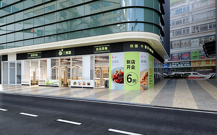 門頭的招牌設(shè)計(jì)是餐廳門店吸引客人進(jìn)店的核心,尤其是臨街鋪面餐飲門店引流最主要的設(shè)計(jì)手法。常規(guī)店面門頭有LOGO,圖形,品牌名,品類;原則是突出品牌名和品類,讓消費(fèi)者看到,并吸引他的注意力。