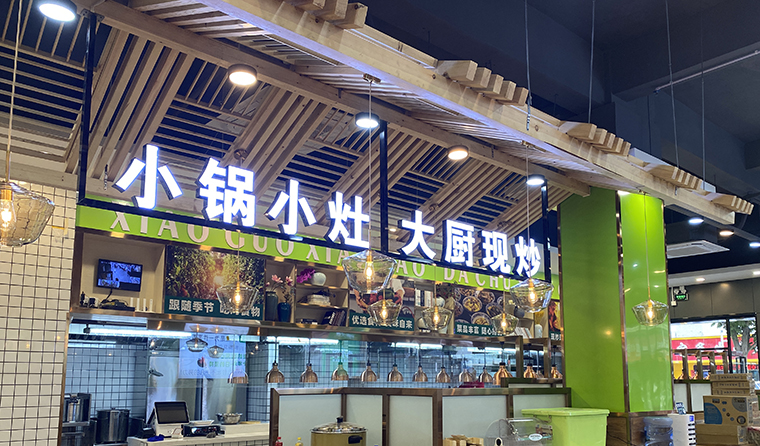 現炒快餐的概念,將廚房直接搬出來,所有的調味品,食用油都是用國內知名品牌全部展示出來,當著消費者的面,讓消費者直觀看見我們把菜品一份一份現場炒出來。當新鮮的食材、美味的小炒冒著鍋氣,讓消費者自己選,想吃什么選什么,想吃多少吃多少。做到了真正地“