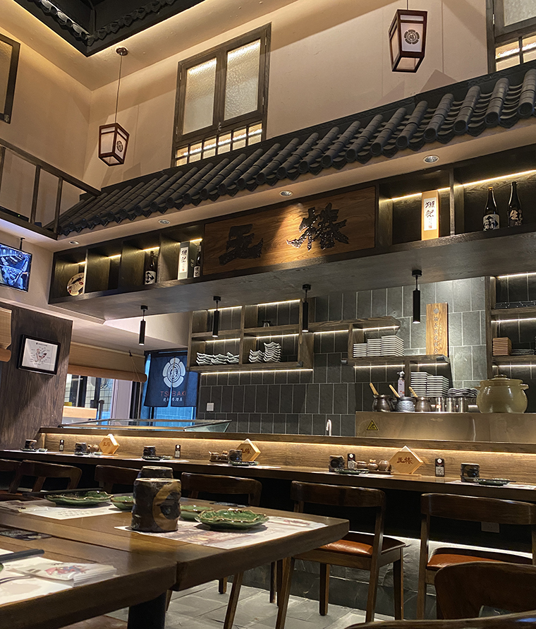 日本料理品牌玉椿燒鳥居酒屋作為一家定位為“一家燒鳥做得很地道,刺身、壽司味道也很好,環(huán)境很日式,氛圍很舒服,消費很實惠的日本燒鳥居酒屋老品牌”,首次進入中國的粵港澳大灣區(qū),在玉椿管理團隊與品深餐飲策劃設(shè)計團隊的通力合作下,始終圍繞“京都味道、匠傳玉椿”的品牌訴求核心,構(gòu)建了完善的品牌文化體系,再通過品牌形象設(shè)計及主色調(diào)將玉椿燒鳥居酒屋潛藏的品牌能量激活出來。再以空間立體化的形式將日本居酒屋的消費文化,燒鳥品類的核心特點表達出來。形成了從虛的文化到實的場景,將難于描述清晰的品牌內(nèi)涵處處展現(xiàn)在空間裝飾,軟裝陳設(shè)、應(yīng)用物料,營銷推廣中,以一種潤物細無聲的溫雅柔性方式將玉椿燒鳥居酒屋的厚重品牌歷史植入到顧客心智中,形成深刻的品牌烙印,讓顧客耳目一新,紛紛打卡,進店消費。也讓一個有底蘊的品牌在粵港澳大灣區(qū)迅速走紅,在較短時間內(nèi)實現(xiàn)了門店盈利狀況良好,經(jīng)濟效益與品牌效應(yīng)雙贏的優(yōu)良局面。