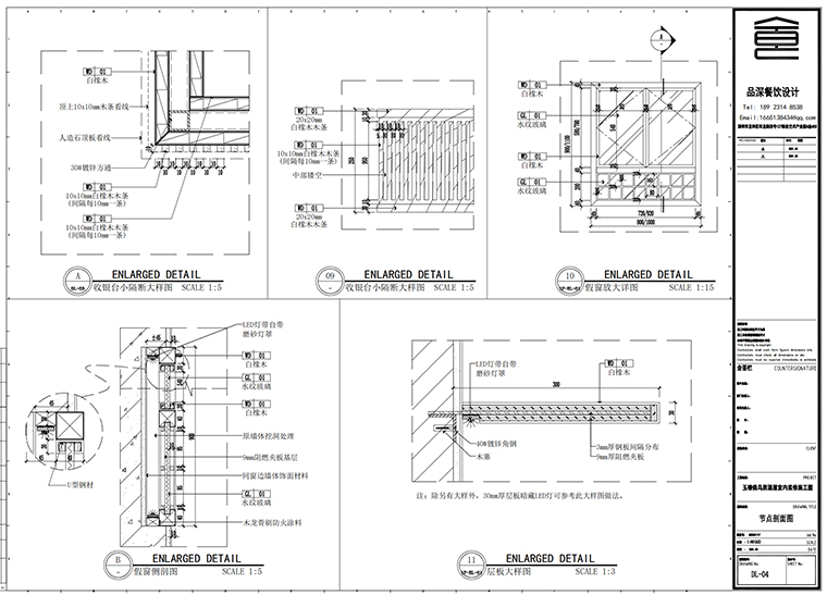品深餐飲設(shè)計對此的定義是:完全能夠精確施工和把控預(yù)算。施工圖中,各種節(jié)點大樣足夠清晰,精準到一方桌椅,小到抽屜的一個把手,都要畫清楚,標明白。同時施工還離不開設(shè)計師的現(xiàn)場交底、節(jié)點驗收,項目經(jīng)理的規(guī)范化管理,主創(chuàng)設(shè)計師或者工程經(jīng)理的定期巡檢。與前期的品牌定位、文化策劃、形象設(shè)計同樣花費時間的就是深化階段的施工制圖。對材料、工藝的熟知,對細節(jié)的精準把握,對預(yù)算的合理劃分,最終將都呈現(xiàn)于一套餐飲空間詳細施工圖中。品牌餐飲門店的空間裝飾設(shè)計不僅是天馬行空,落在圖上的每一處,才是品深餐飲設(shè)計師數(shù)十年的經(jīng)驗沉淀。