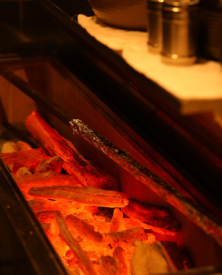 略顯厚重的筆劃,墨色飽滿,濃枯結(jié)合,類似燒鳥用的備長炭,暗合了我們的品類屬性。