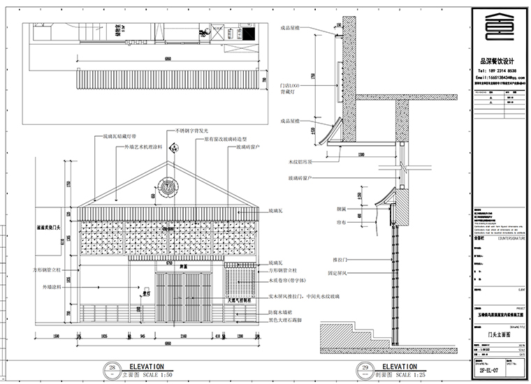 1、門頭及外立面設(shè)計:門頭是門店吸引顧客進店的指示牌,在空間展示中占的比例最高。品深餐飲設(shè)計總結(jié)的門頭設(shè)計三大原則。