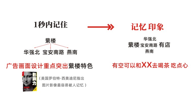 記住“蘩”字即可。我們發(fā)現(xiàn)只要能記住“蘩”字,同時加上連續(xù)時間段的傳播,蘩樓這個品牌就開始會形成較強的品牌記憶。