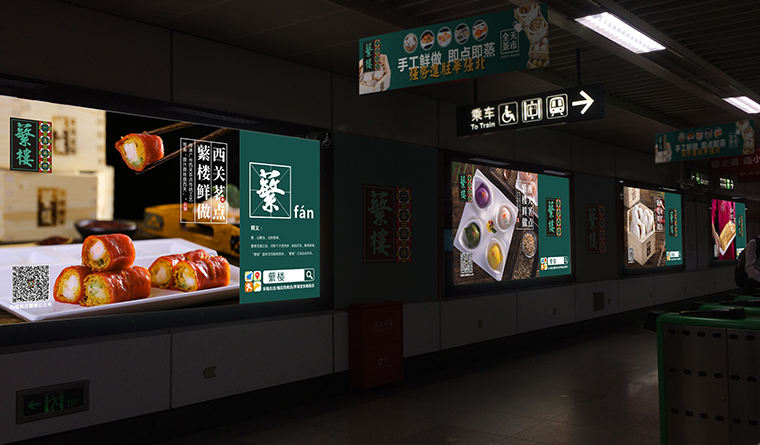 經過蘩樓持續(xù)多年,多批次的地鐵站海報設計,品深設計和品牌方一起把一家默默無聞的餐飲品牌曝光到赫赫有名。由此,我們更加堅定的認為:設計工作沒有一勞永逸的方法,只有因地制宜,因時因勢而定的決策。同一個廣告畫面因為數量、位置、時間、形式的不同,就需要對應不同的設計方案和方法。唯有如此,才能實現(xiàn)品牌傳播的有的放矢,廣告成本的最大化效用。