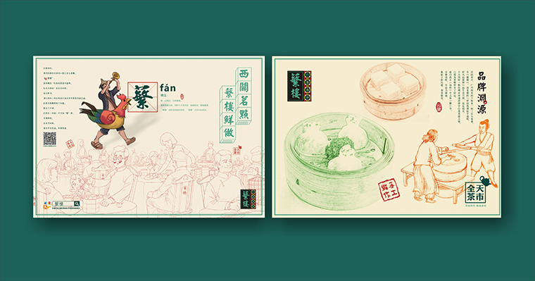 此次地鐵海報為單個畫面出現(xiàn)的情況為主,通過對現(xiàn)有蘩樓情況分析,我們認為此次海報需要再次強化蘩樓特色產品,同時還要延續(xù)前期蘩樓品牌資產,保留部分設計風格,保存原有蘩樓的品牌印象的同時加強蘩樓的品牌印象。