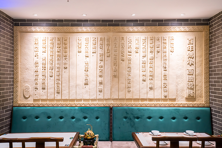 在我們另外一個全案策劃設(shè)計項目悅得閑廣式點心茶樓,則始終圍繞廣式早茶文化、得閑飲茶的老廣州休閑美食文化,用墻面雕塑造型,品牌故事上墻,得閑飲茶的霓虹燈裝置來表現(xiàn)。既讓整個用餐空間的廣式茶點休閑氛圍非常濃厚,嶺南文化的品位呈現(xiàn)也非常直觀。