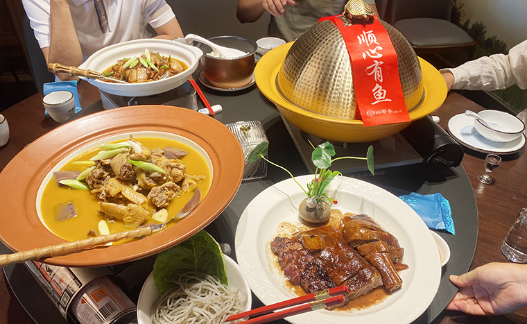 深圳的祿嬸雞煲餐廳,有一道特色菜叫做冬瓜盅花膠雞,湯鮮味美,非常好吃。每次用老冬瓜盅盛的花膠雞上桌煮開后,服務(wù)員圍成一圈,齊聲用粵語大喊:撈起撈起,撈得風生水起。非常有儀式感,外地人基本聽不懂這句粵語,但能感知出是吉祥祝福話,顧客覺得非常有趣,也很自然就記住了品牌。這與單純菜品好吃很不一樣,在菜品中加入民俗文化,