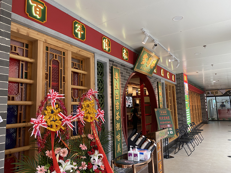 經(jīng)過品深餐飲全案策劃設(shè)計(jì)團(tuán)隊(duì)的用心工作,努力耕耘,在空間形象上將嶺南園林古建筑的鑊耳山墻,廣式花窗引入整體空間裝飾中,大面積紅色、深綠色、廣式灰磚的搭配使用,將傳統(tǒng)廣州西關(guān)文化以時(shí)尚更精致的形式表現(xiàn),為上海人民帶來了傳統(tǒng)廣州西關(guān)的飲茶生活方式。2020年6月16日,寶粵樓上海首家店開啟試營業(yè),即點(diǎn)即蒸的廣式點(diǎn)心一經(jīng)推出即受到了廣大上海人民的追捧。