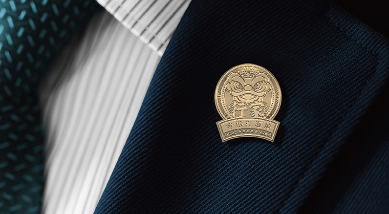 品牌記憶點:南派醒獅+香港海洋藍+玫瑰金不銹鋼+品牌元素在空間中應(yīng)用